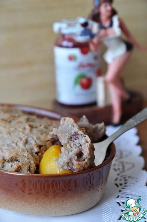 Рецепт «Персиковый пирог с вишнёвым конфитюром»: