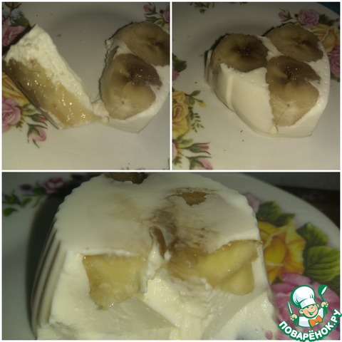 Вкусный творожный десерт с кусочками банана. Готовить его очень просто, в него можно добавить различные фрукты и ягоды. Положите ваши любимые фрукты и наслаждайтесь молочно-фруктовым желе. У кого есть детки, они оценят ваши старания, так как они очень любят всякие красивые сладости. На празднике творожный десерт может заменить тортик, его и готовить быстрее и проще, и выглядит он очень аппетитно. В моем желе есть только бананы, мне очень нравится именно этот вкус, сочетание творога и банана.