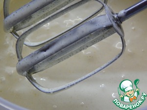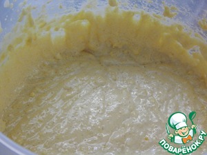 Продолжая взбивать, постепенно вводим кукурузную муку и ванилин.