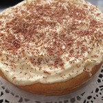 Желток, вода, подсластитель, кукурузный крахмал, лимон (цедра или сок). Он получился более водянистый, чем обычный заварной крем, плюс кукурузный бисквит очень пористый, поэтому, полагаю, быстро пропитался.