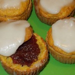 Полезные и вкусные маффины, придутся по вкусу и взрослым и детям! В меру сладкие с пикантной кислинкой вкуснейшего конфитюра и сливочно-сырной помадкой. Калорийность одного маффина 113 ккал.