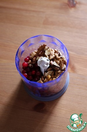 9. Клюкву перебрать, промыть. Клюкву и грецкий орех измельчить блендером.