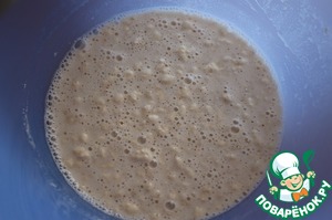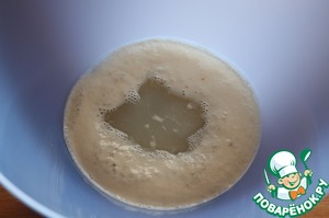 4. Как только дрожжи поднимутся пушистой шапочкой (внутри звезда символично появилась), добавить рисовую муку.