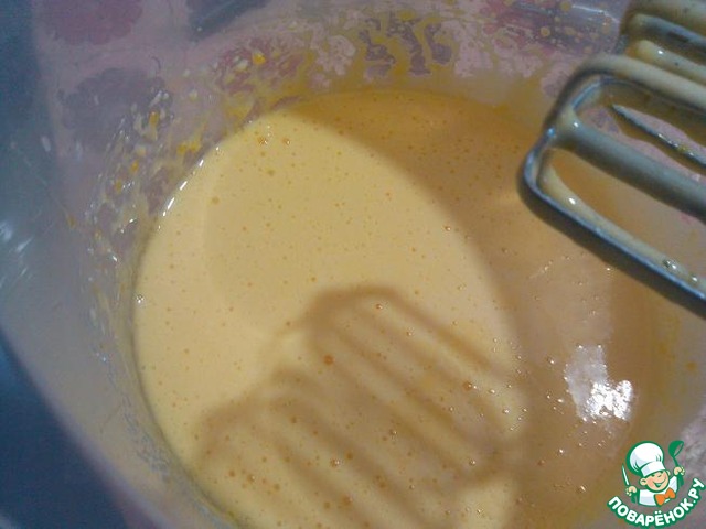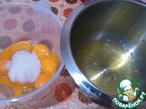 Желтки растереть добела с оставшимся сахаром ( 60г)