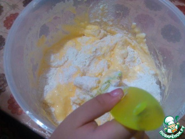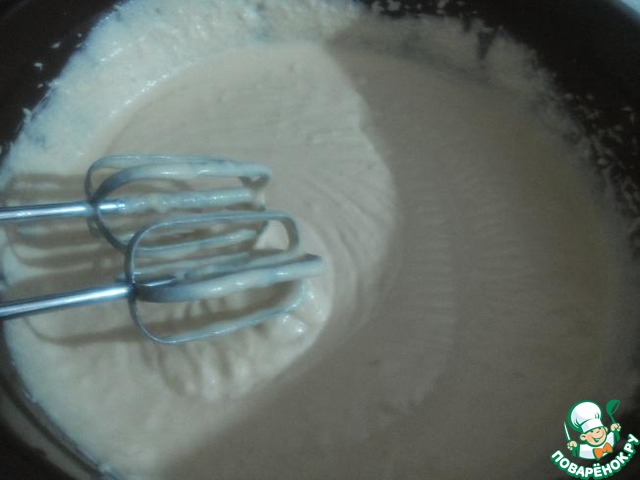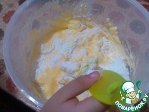Осторожно, по частям добавляя белки в желтки, размешивать...