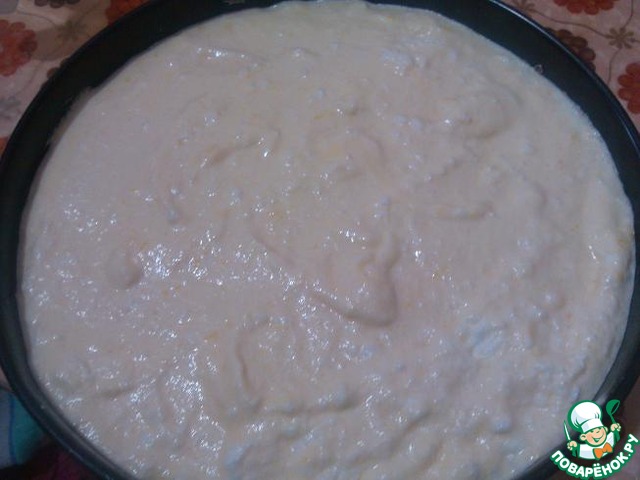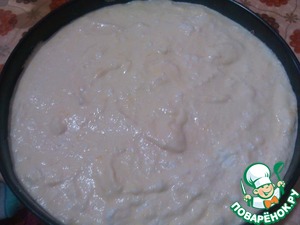 В конце добавить муку, смешанную с крахмалом и ванилином. Размешивать аккуратно, движениями снизу вверх.. до однородной массы. Форму для выпечки ( диаметр 26 см) застелить пергаментом, не смазывая маслом, вылить массу и прокрутить против часовой стрелки.