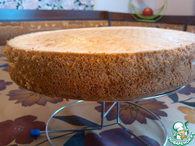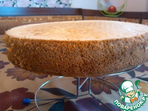 Остывший бисквит разрезать на 3 части по горизонтали.