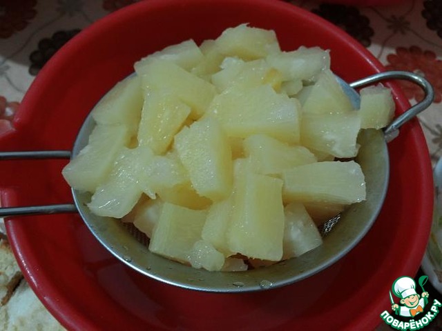 - Ананас (650 г., в прослойку, кусочками) — 1 бан.