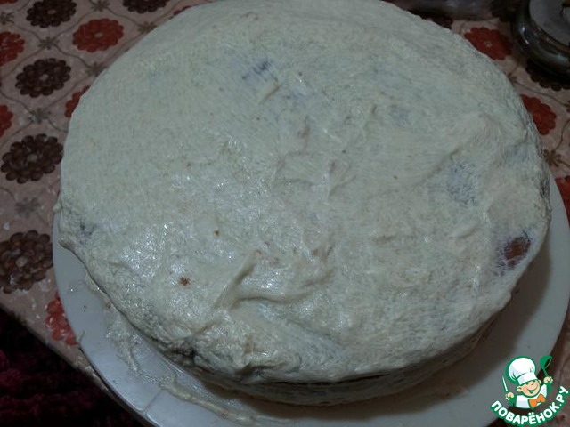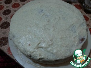 То же самое проделать со 2-м коржом... Верх и бока торта смазать кремом.