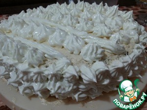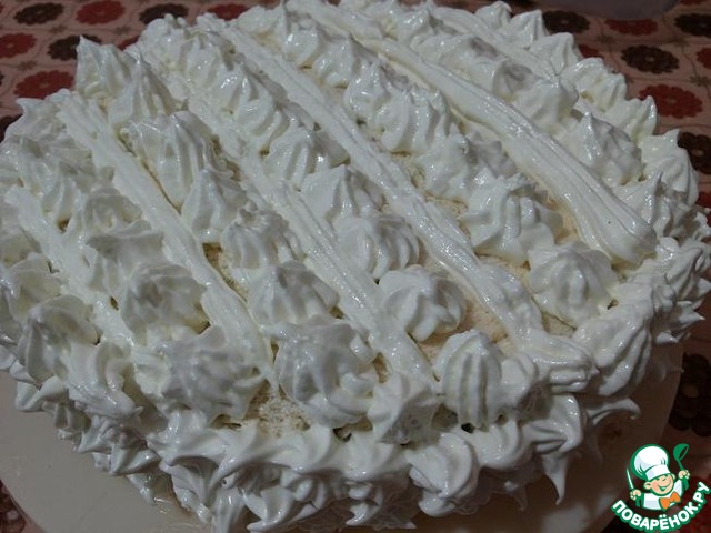 Далее можно украшать как вам угодно: белковым кремом, взбитыми сливками и т. д. Я решила украсить швейцарским безе, т. к. он хорошо держит форму.