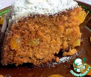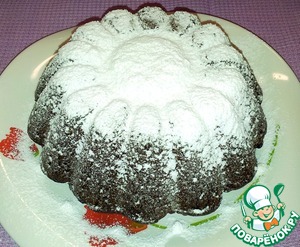 Кекс перевернуть в тарелку и через сито посыпать его сахарной пудрой.
