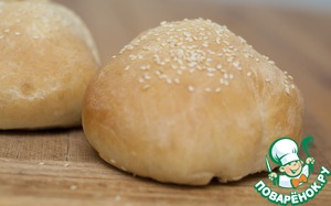 Формируем из него две гамбургерные булочки и смазываем их сверху растительным маслом. (для большей аутентичности я их дополнительно посыпал кунжутом).