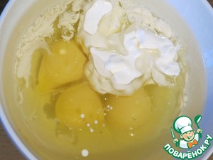 Яйца, цедру, масло и йогурт взбить отдельно.