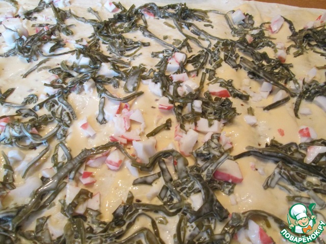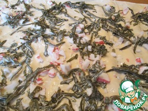 Затем добавляем морскую капусту перемешанную с майонезом и чесноком