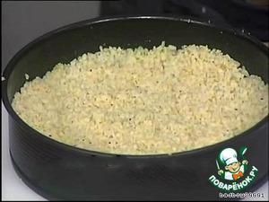 хорошо перемешаем и уложим, желательно в разъемную ( 26-28 см) форму, чуть уплотнив рукой