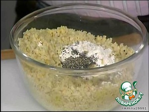 Приготовим первым делом Бургуль, так как он уже сварен, и просто высушен, нальем примерно пол-литра воды и дадим впитаться, добавим 4 ложки муки, 4 ложки оливкового масла, соль и перец. Кто не знает, что это такое, и как его едят, ПРОСТО замените, на пшеничную кашу.