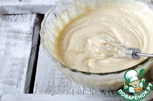 Всыпать муку, мускатный орех, соду, соль и размешать. Долго мешать не надо, только, чтобы все ингредиенты соединились, тесто должно получиться густым.