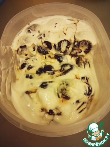 Дайте настояться десерту, чтобы он загустел, и чернослив немного пропитался йогуртом.