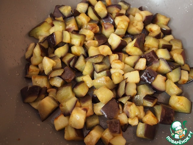 Затем кусочки баклажана обжарить на растительном масле до золотистости.