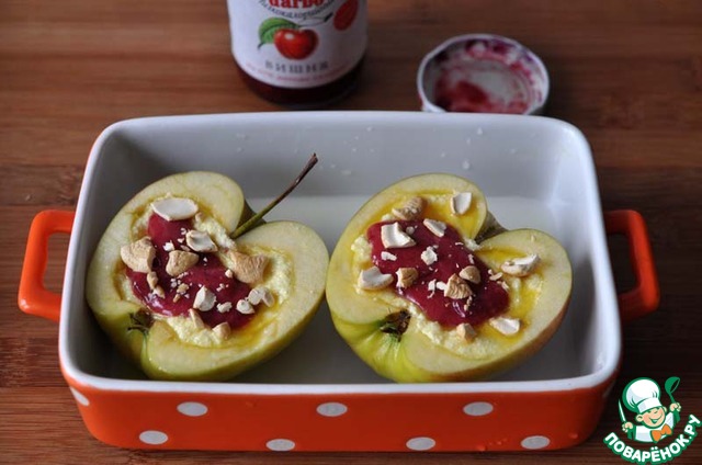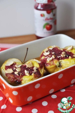 Яблоки кладём в форму для запекания, наливаем на дно 100 мл воды.