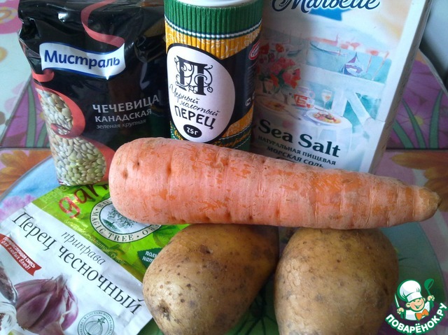 • Промываем чечевицу и замачиваем на ночь. Утром когда будете сливать воду, будет заметно, что чечевичные зерна увеличились в размере. Далее нужно измельчить чечевицу, при помощи блендера или мясорубки. Чечевица отлично измельчается и превращается в плотную массу. Картофель и морковь также измельчить или потереть на мелкой тёрке.