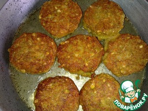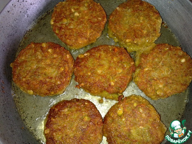 • Обжарить на растительном масле до коричневого цвета на среднем огне 5 минут. Перевернуть котлетки и обжарить вторую сторону также до коричневого цвета 5 минут.