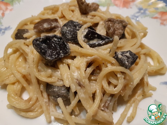 Рецепт «Спагетти с креветками и грибами в сливочном соусе»: