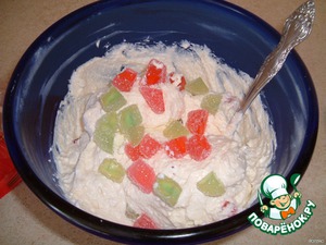 • Добавить порезанный на небольшие кусочки мармелад. Размешать.
