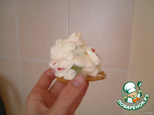 • Взять одну печеньку, положить на нее творожную начинку и плотно прижать к ней две печенюшки с двух сторон, образуя форму домика. Все три печеньки должны быть краями плотно прижаты друг к другу. Если начинки в домике маловато, аккуратно заполните пустые места. Если начинки в домике многовато, аккуратно снимите лишнюю начинку ножиком, чтобы все было ровненько, красивенько и аккуратненько. :)
