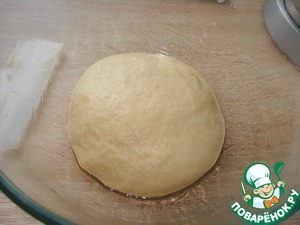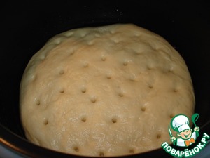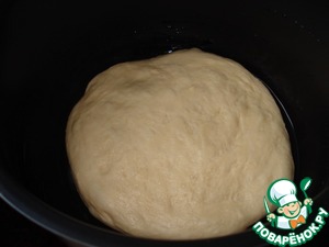 Подошедшее тесто раскатаем в круг и выложим в чашу мультиварки.