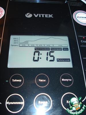 Потом включаем режим "Выпечка " Выпекаем 25 минут на одной стороне, потом переворачиваем и выпекаем еще 15.