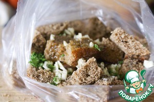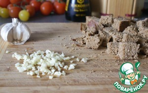 Смешать хлеб с чесноком, солью, перцем и оливковым маслом.