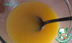 Яйца взбить с сахаром. Добавить все оставшиеся ингредиенты для коржа.