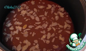 Пирог поливаем глазурью и посыпаем миндальными лепестками. Включаем режим "Выпечка" и выпекаем 30 минут.
