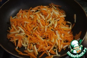 • Добавить морковь и корень сельдерея, пассеровать до мягкости. Отставить.