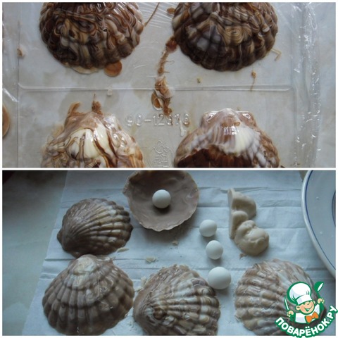 Уберите в холод на 6 часов для стабилизации суфле. Я убирала на ночь. Утром мне удалось без критических повреждений достать только 2 суфле. Остальные суфлешки пострадали - шоколад потрескался и в некоторых местах отвалился. Отломанные кусочки шоколада я собрала, растопила вновь и "зашпаклевала" огрехи. Вам же я посоветую положить суфлешки на решетку и полить растопленным шоколадом (топите его только на водяной бане! Дно кастрюльки не должно касаться воды). Когда шоколад застынет, переверните суфле и смажьте силиконовой кисточкой дно каждого пирожного.