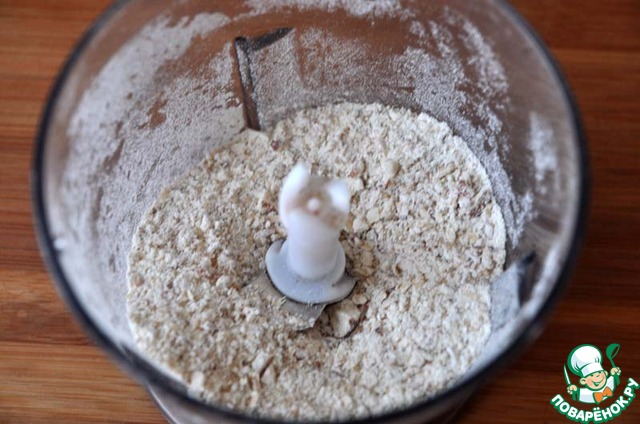 Измельчаем, перемешиваем в блендере. Нет необходимости измельчать в муку, достаточно несколько оборотов.