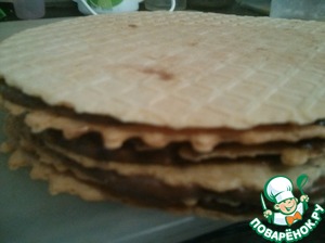 Вот таких вышло три "тортика"! Вынесла в прохладное место, но не в холодильник, чтобы не отсырели вафли.