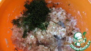 Добавить мелко нарезанную зелень, солим, перчим по вкусу и вымешиваем.