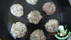 Руки смачиваем водой и формируем котлетки небольшие, и жарим на разогретом масле.