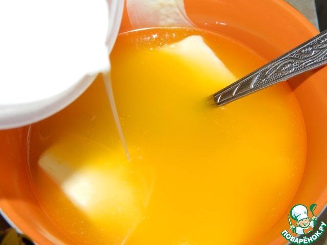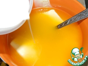 Маргарин растопить и остудить Добавить к нему молоко и мед.