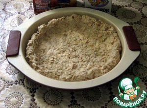 В смазанную маслом форму выкладываем тесто, делая при этом бортики по краям.