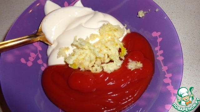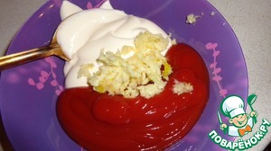 Смешиваем кетчуп, майонез и чеснок.