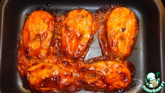 Увидела этот рецепт давным давно в передаче " Званый ужин"' поэтому и название такое! Сначала подумала, фу бякушка, рыба с кетчупом... Но, когда сделала, поняла, что это далеко не бякушка... Вроде на сайте такого рецепта нет...