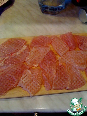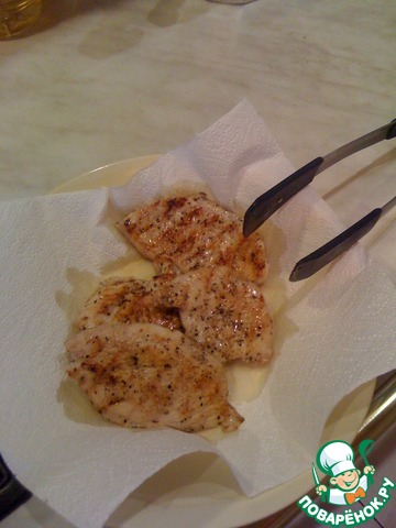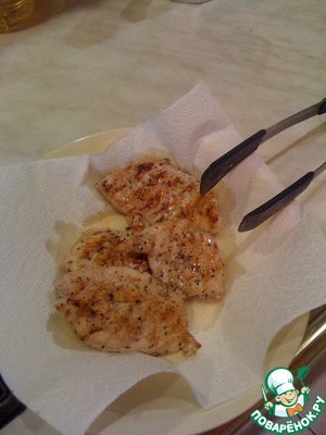 Готовые грудки выложить на салфетку, чтобы убрать лишнее масло