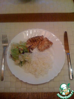 Подать курицу можно с рисом и салатом. Приятного аппетита!