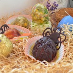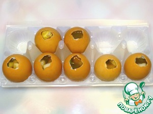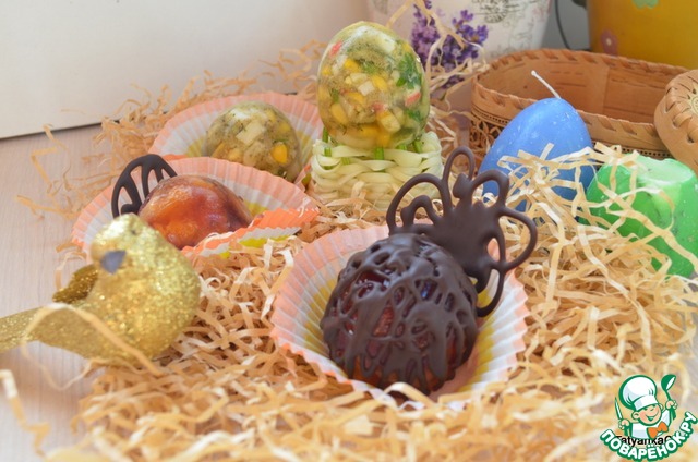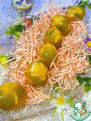 Через 2 часа фруктовые яйца достаем из холодильника, очищаем от скорлупы и выкладываем на блюдо. Десерт готов!