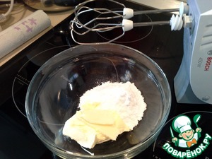 • Размягченное сливочное масло взбиваем с сахарной пудрой.