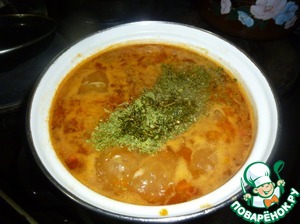 Дать прокипеть, по желанию добавить пару зубчиков чеснока, раздавленного через чеснокодавилку, лавровый лист, зелень укропа, петрушки и любистока.