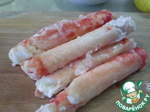 Для двух салатов у меня было 500 грамм отварного белого мяса краба Камчатского.
